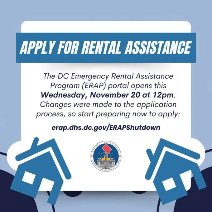 The DC Emergency Rental Assistance Program (ERAP) applications open TODAY **Wednesday, November 20th at 12pm! Gather your documents now!